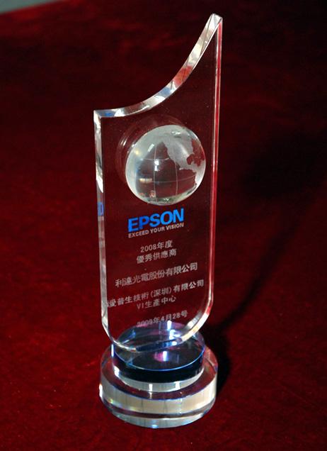 利達(dá)光電獲深圳愛普生2008年度最佳供應(yīng)商榮譽(yù)