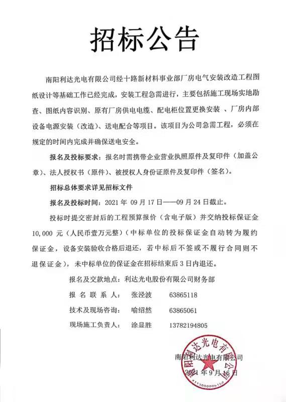 - (2022-09-29)光電新區(qū)三期廠房一層裝修施工的招標(biāo)公告