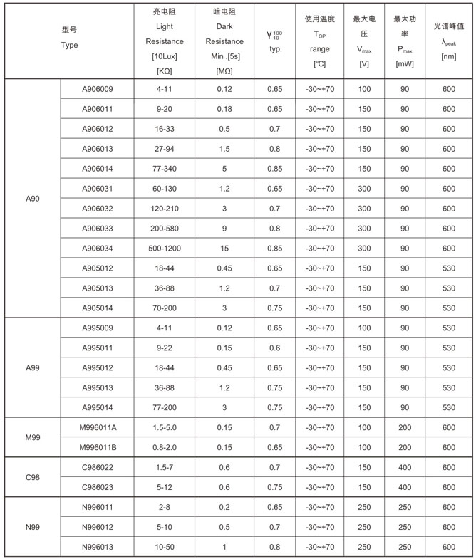 環(huán)氧樹脂封裝型光敏電阻系列2 Resin Package Photocells Series2